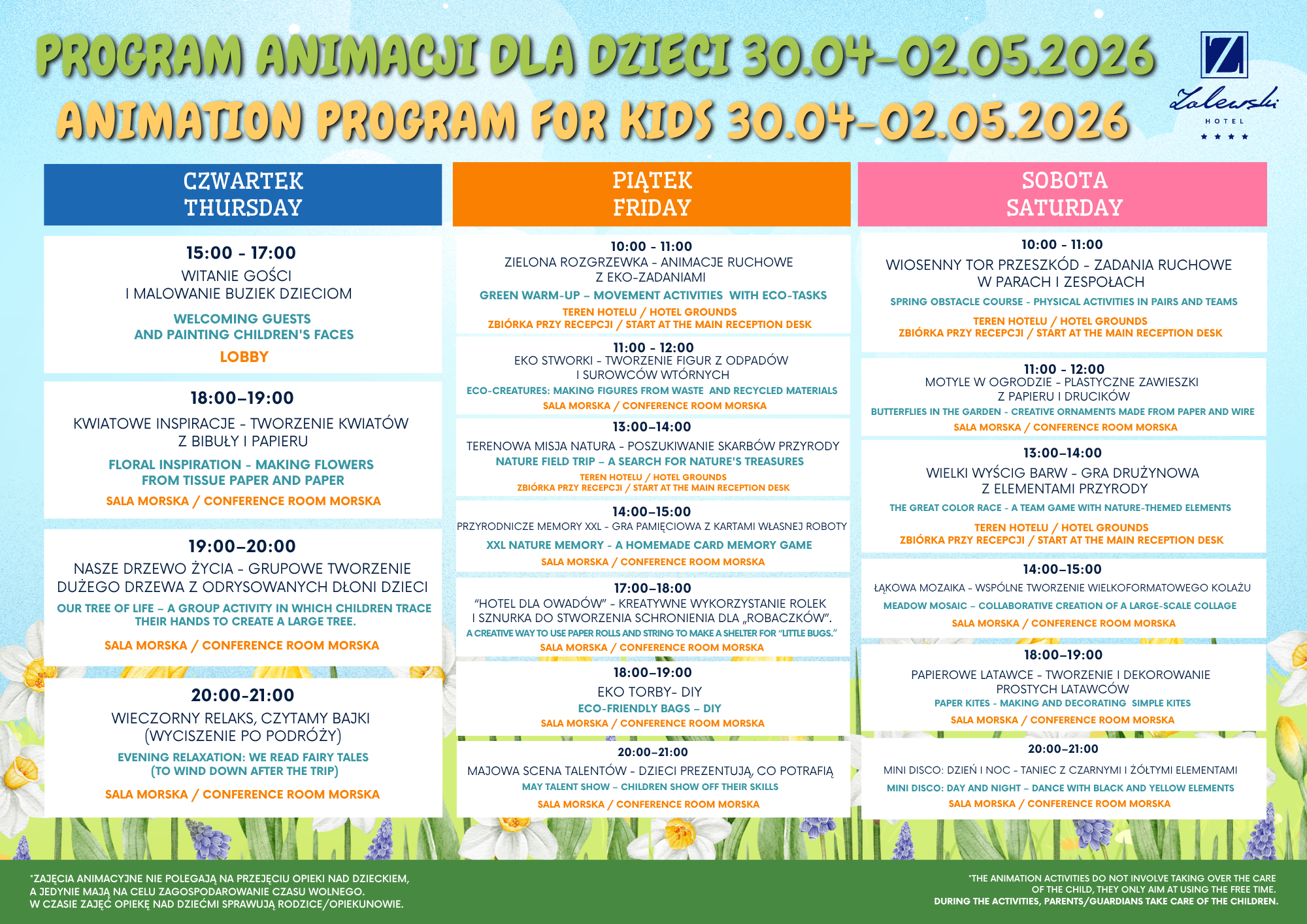 Zapraszamy do zapoznania się z planem animacji i wspólnego spędzenia niezapomnianej Majówki!